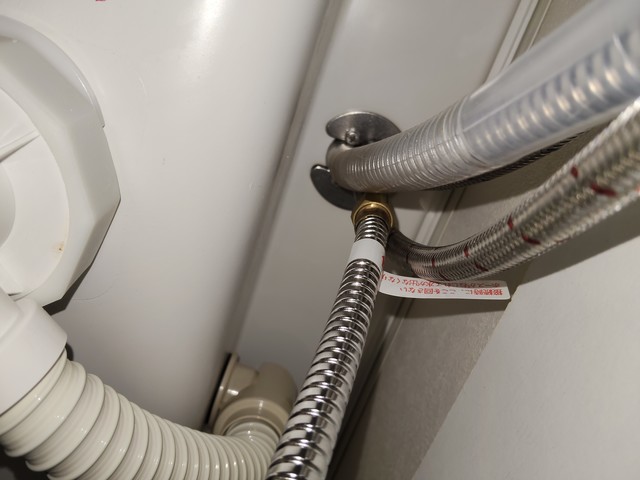 水と温水のホースを取り付け。