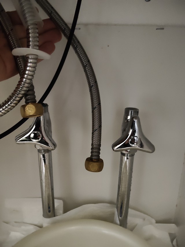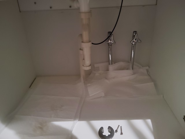 洗面台下でやるには狭すぎたので、上に引き抜いてからやった方が楽でしょう。