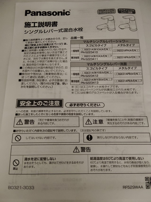 これから調べていくと、ついている水栓自体の型番も判明。